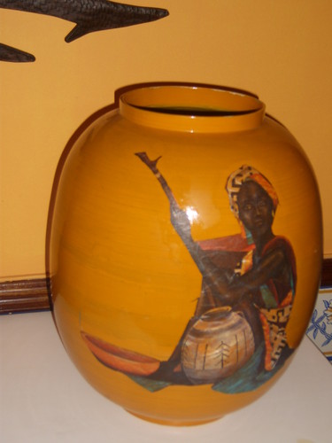 Pote em madeira e aplicaçao de figura africanaas minhas sobrinhas ja conhecem a minhapredilecçao por estas figuras