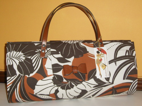 esta tb uma bonita carteira de maoconfeccionada em tecido e forrada fecho de mola e alças em verniz preto